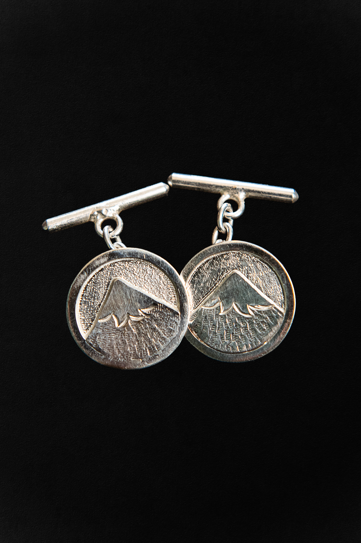 Inspirados en el majestuoso volcán Lanín, emblema natural y espiritual del Neuquén, estos gemelos en plata 900 combinan elegancia con sentido de pertenencia. Su silueta en relieve es lograda mediante un minucioso trabajo artesanal, que refleja la destreza del platero y el respeto por los símbolos del territorio. Pensados para ocasiones especiales, son una pieza distinguida que lleva consigo la fuerza y serenidad de la cordillera.