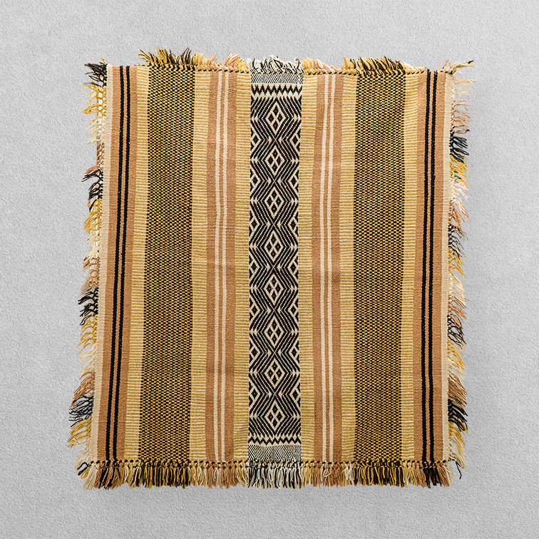 Hilada a mano y tejida en telar mapuche vertical, esta alfombra es una expresión viva de la cultura ancestral.